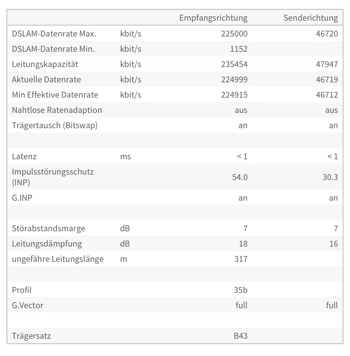 DSL nur 225 Mbit/s Profil