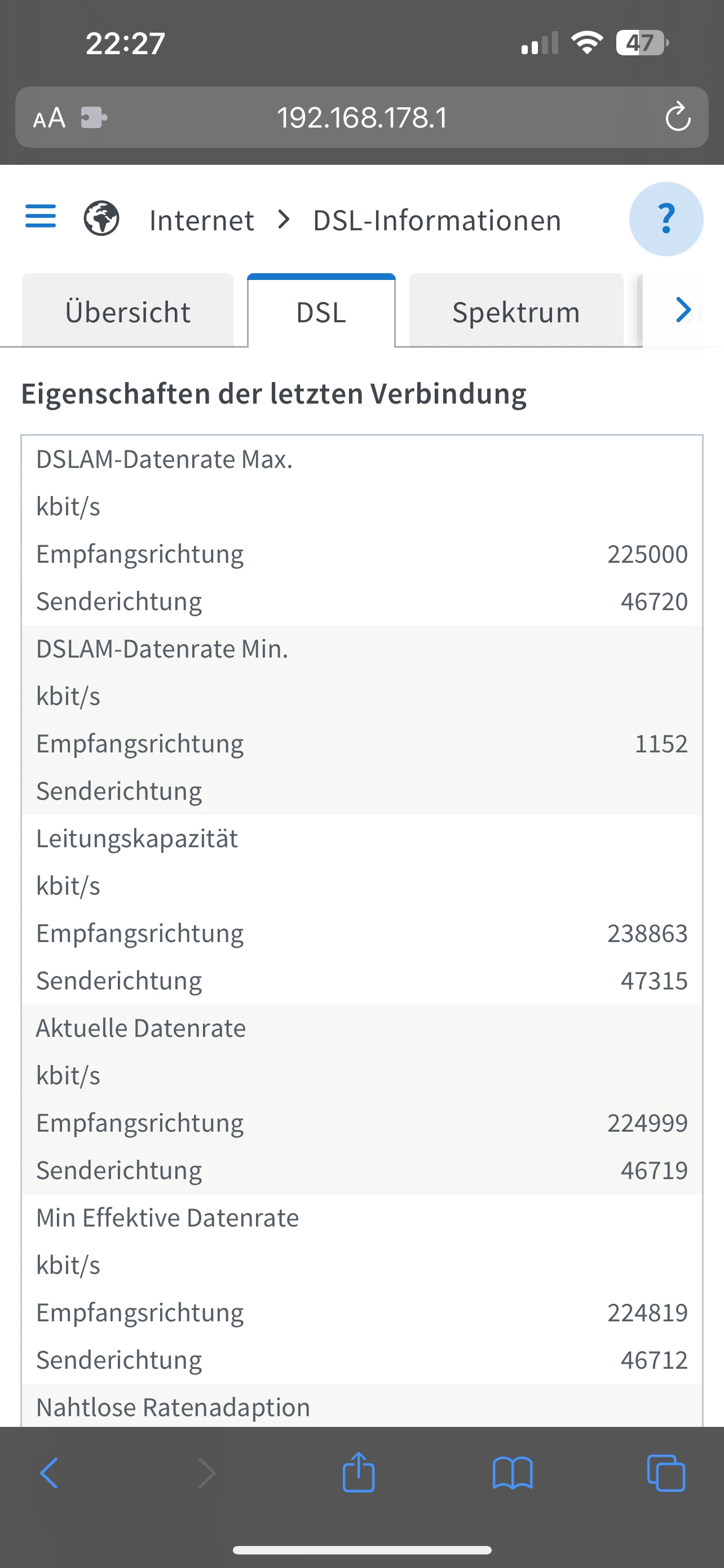 DSL nur 225 Mbit/s Profil