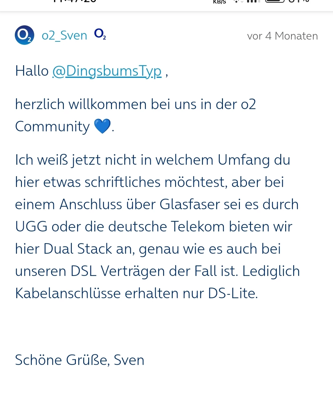 Stimmt 😂 UGG liefert das Transportmedium über das o2 Dual-Stack anbietet.