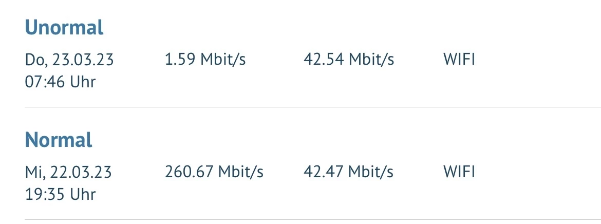 “Schwer zu analysieren” glaube ich gern: Von dem Zeitpunkt, wo das Problem auftritt und man sich schnellerweise im Service-Chat beschwert, bis zu dem Zeitpunkt, an dem mal ein Techniker draufschaut, DSL-Sync und Fehlerrate für OK befindet und einem dann (sinngemäß zugespitzt) was von “Sie dummer Kunde haben bestimmt über WLAN getestet und wollen es nur nicht zugeben” auf den AB sabbelt, vergehen gerne Stunden. Ergo habe ich bis dahin schon lange entnervt auf “Neu verbinden” geklickt, eine neue IP erhalten und mit etwas Glück für eine gewisse Zeit wieder normalen Speed gehabt und bin evtl. garnicht mehr zuhause🙃 Nun ja, ich bin frustriert. Wie jeder größere Kundenservice für Endverbraucher ist auch der bei O2 auf Abwimmeln statt Problemle lösen fokussiert, OK.