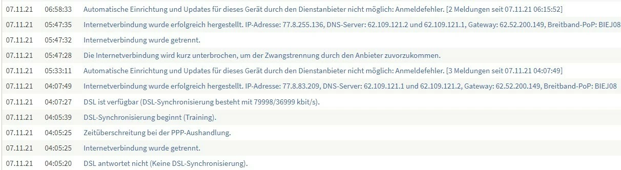 Die Fritze war ununterbrochen am Strom, Verbindungsabbrüche gab es meiner Kenntnis nach keine.