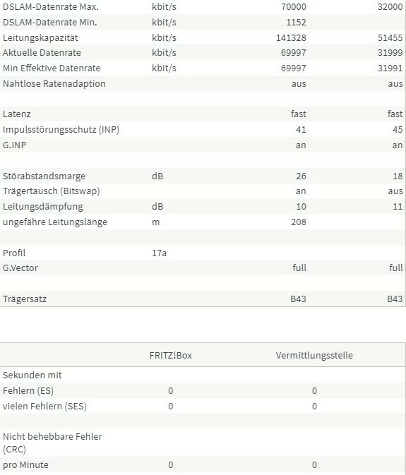 Dass da ASSIA eingegriffen hat, siehst du an den “DSLAM-Datenrate Max.”-Werten. Wenn das “runde” Zahlen sind, die auf -000 enden, dann ist mit 99.9%iger Wahrscheinlichkeit ASSIA am Werk. Da du ja die Ursache (die falsch verbundenen Telefondosen) beseitigt hast, wird es jetzt mit etwas Geduld auch in der Geschwindigkeit wieder hoch gehen. Wie schnell das geht, wird dir mit Sicherheit vermutlich niemand sagen können. Wie von @rentek bereits geschrieben, lass das ganze so laufen (bzw. wenn die FritzBox nur geliehen war und die Homebox nochmal dran muss, kannst du die natürlich wieder anstöpseln) und vermeide Neustarts oder sonstige Aktionen die zum Re-Sync führen, da diese den Counter bis zur Hochstufung wieder zurücksetzen können.