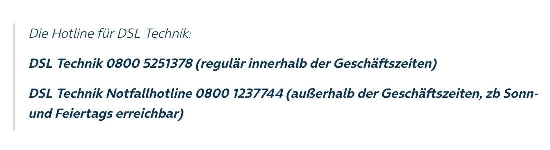Aber ich würde bei Problemen erst noch mal wieder die Störungshotline anrufen.