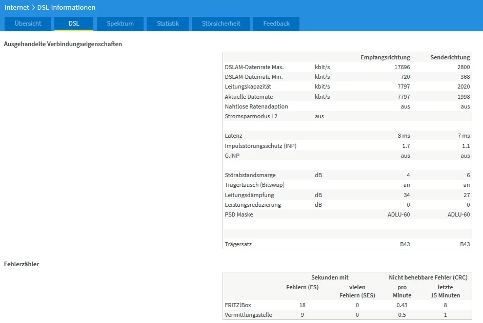 Die Linecard Infineon 8.43.7 ist eine ältere, aber leistungsstärkere als die neue Infineon 13.6.0. Daher sollte nach Behebung des Problems auch wieder eine deutlich höhere Geschwindigkeit anliegen.