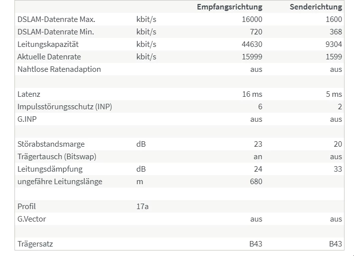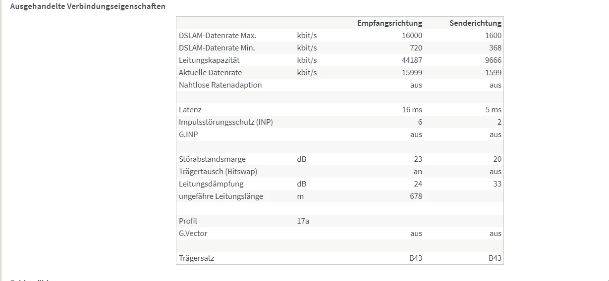 Hier hat das DLM der Telekom zugeschlagen und aufgrund von (vermeintlichen) Fehlern ein Deckelprofil mit glatt 16 MBit/s aktiviert.
