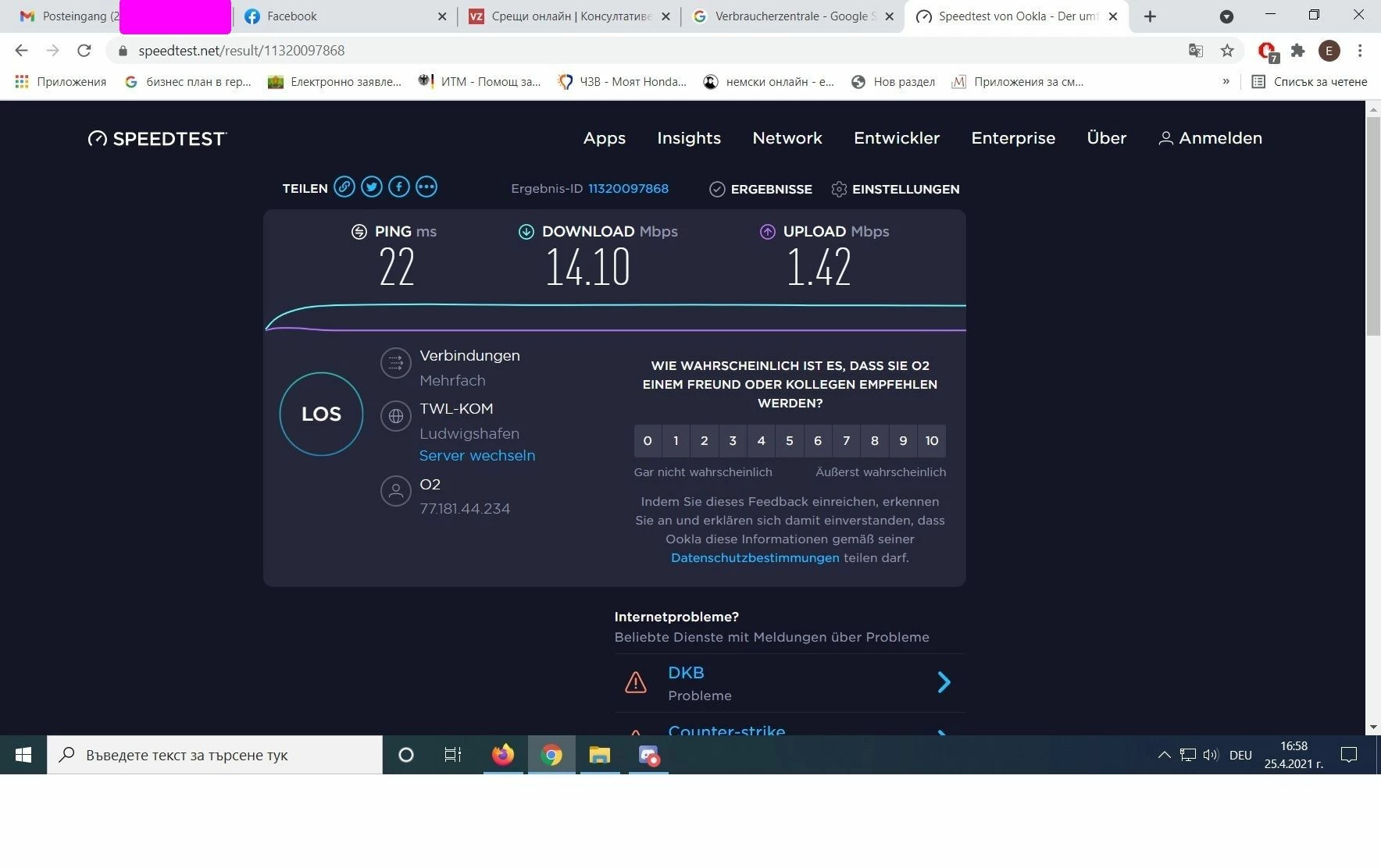 Seit 20 Monaten ist meine Geschwindigkeit reduziert.Ich habe nie eine Schleppgeschwindigkeit von mehr als 15 MBit / s. Das Problem bleibt trotz meiner Beschwerden bestehen. Dies ist die Standardgeschwindigkeit für diesen Vertrag 50 MBit / s. oder etwas ist kaputt Der Router wird vom O2 Modell gemietet ist die o2 Homebox 6441.