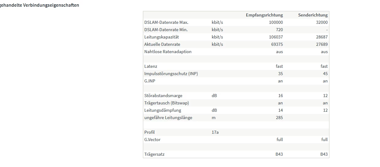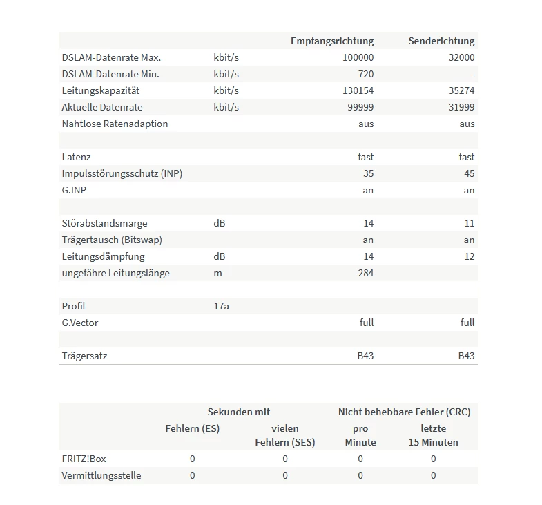 Dann läuft die Leitung am Ende einfach nur stabil. Bei mir jetzt nach Fertigstellung auf Super Vectoring und danach das 7.12 Fritzbox Update seit 25 Tage stabil ohne neu Sync . Vorher auch schon aber dann kam das AVM Update. Bei mir musste ich aber auf den alten Treiber in der Box gehen. Läuft besser und der neue bei meiner Schwiegermutter keine 2 min. Mit dem alten auch bei ihr schon 45 Tage durchgehend sauber