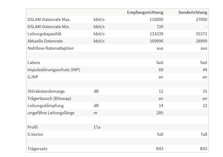Nur halt die DSL Syncrate ist immer noch bei 110MBit und 27MBit.