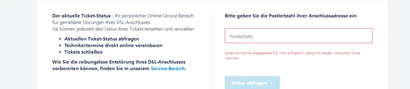 Treten weiterhin Abbrüche auf melde Dich bitte direkt via Handy von Zuhause beim Störungsservice.