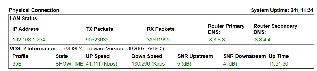 Ansonsten bitte die Informationsseiten aus der GUI des Vigor zum DSL Link screenshoten und posten...