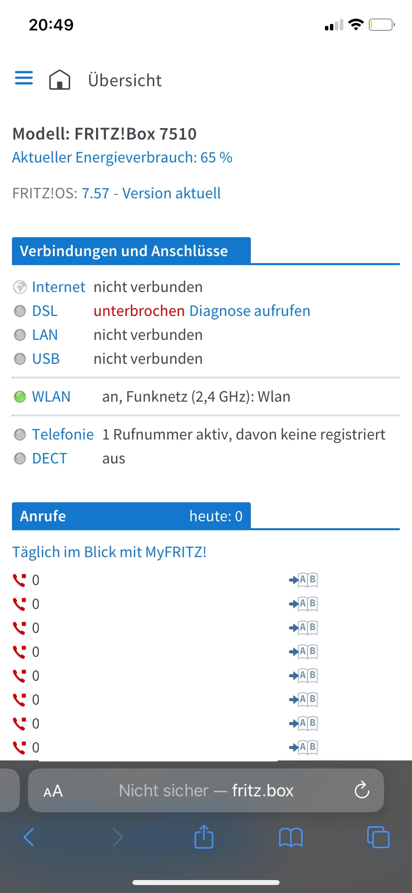 Auf der Fritz box Seite erhalte ich nur folgende Information: