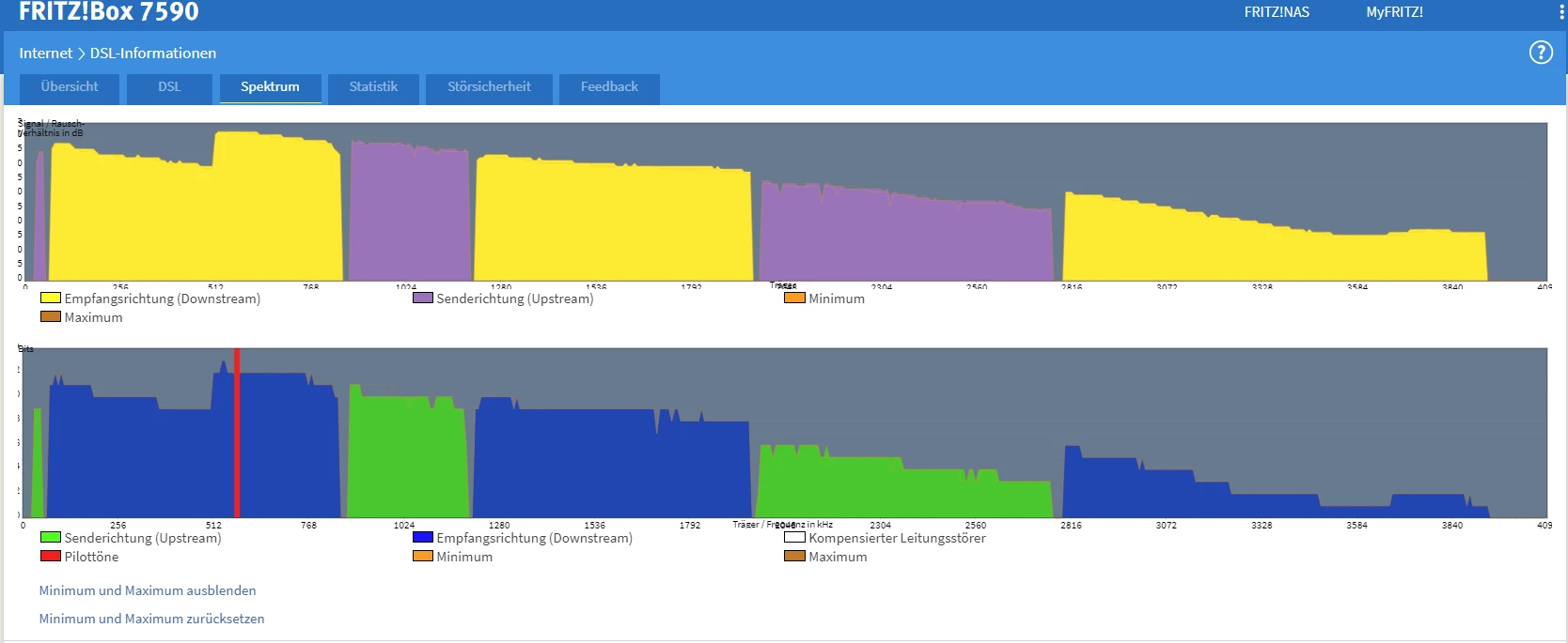 Sind denn bei der Fritzbox alle Störrregler auf “max. Performance”? Wenn nein, bitte alles auf “max. Performance”.
