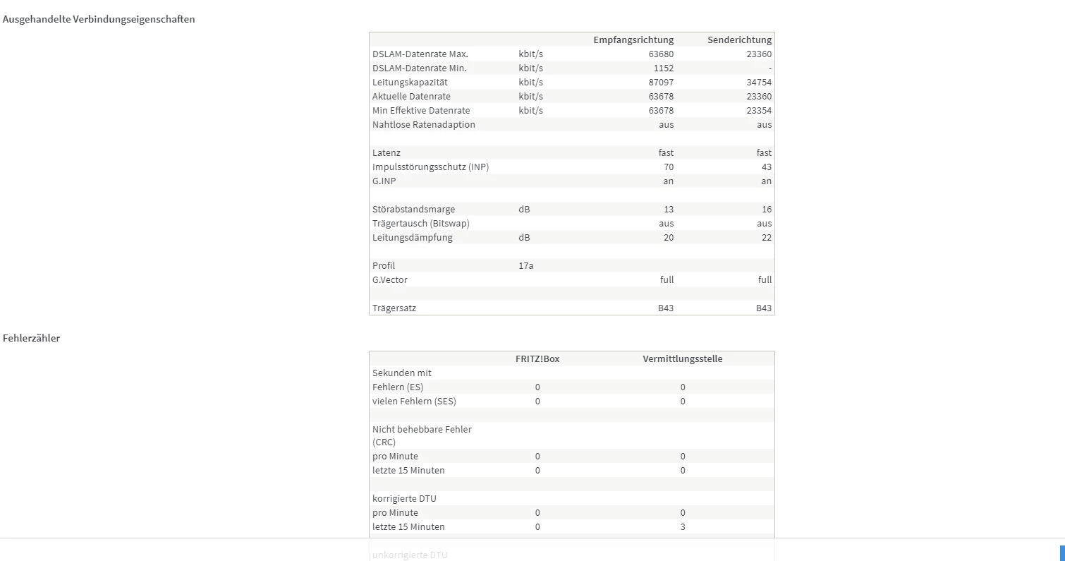 @Anfänger1: Doch, 63680/23360 ist der kleinste ASSIA-”Deckel” beim VDSL100-er Profil der Telekom. Hatten wir hier schon öfters, dass Kunden, die einen 100-er-Tarif hatten, auf 63680/23360 runtergedrückt wurden und nach Behebung des Problems wieder auf die ursprünglichen 80000/32000 hochgestuft wurden.