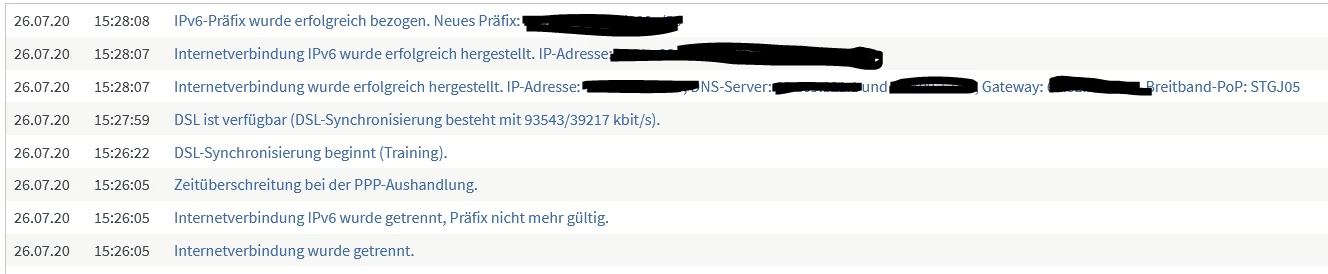 26.07.20 18:39:02 DSL antwortet nicht (Keine DSL-Synchronisierung).