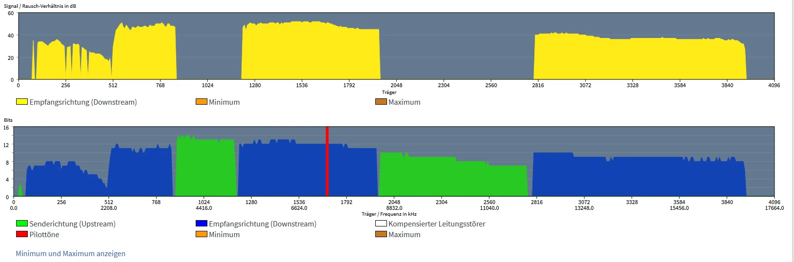 der Downstream ist im unteren Bereich gestört. Das deutet darauf hin, dass im Haus noch andere PLC-Adapter nutzen. Gerade im Altbau gibt es da Einstreuungen durch benachbarte Elektroleitungen.