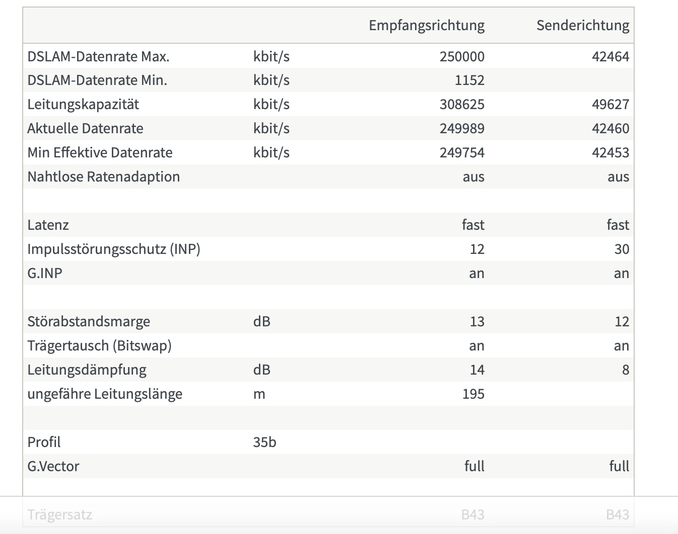 Wenn man einen Anschluss mit Supervectoring hat, dann möchte man auch, dass da möglichst das Maximum ankommt. Kann ich verstehen, sehe ich bei meinem Anschluss genau so ;-)