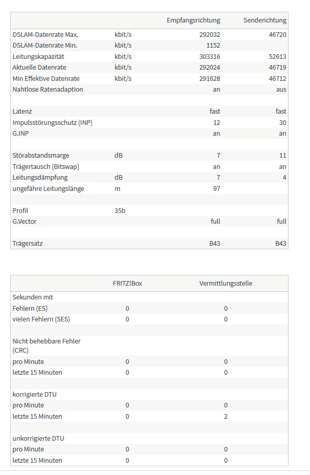 Kannst du bitte mal einen Screenshot der Tabelle “DSL” machen, auch von den Fehlerzählern?
