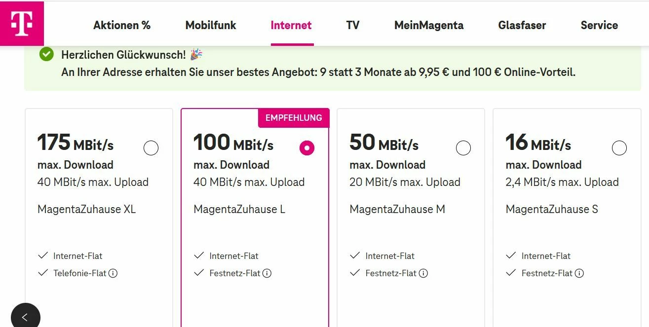 Das wären die möglichen Tarife, die mir bei einem Adresscheck bei der Telekom angezeigt werden: