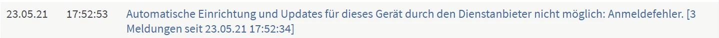 Automatische Einrichtung und Updates für dieses Gerät durch den Dienstanbieter nicht möglich: Anmeldefehler.