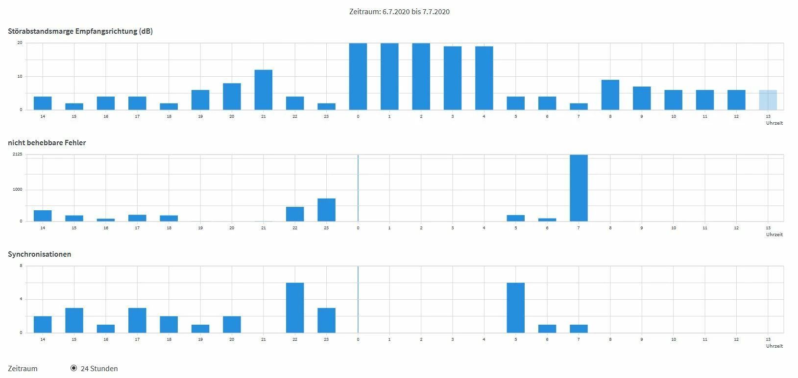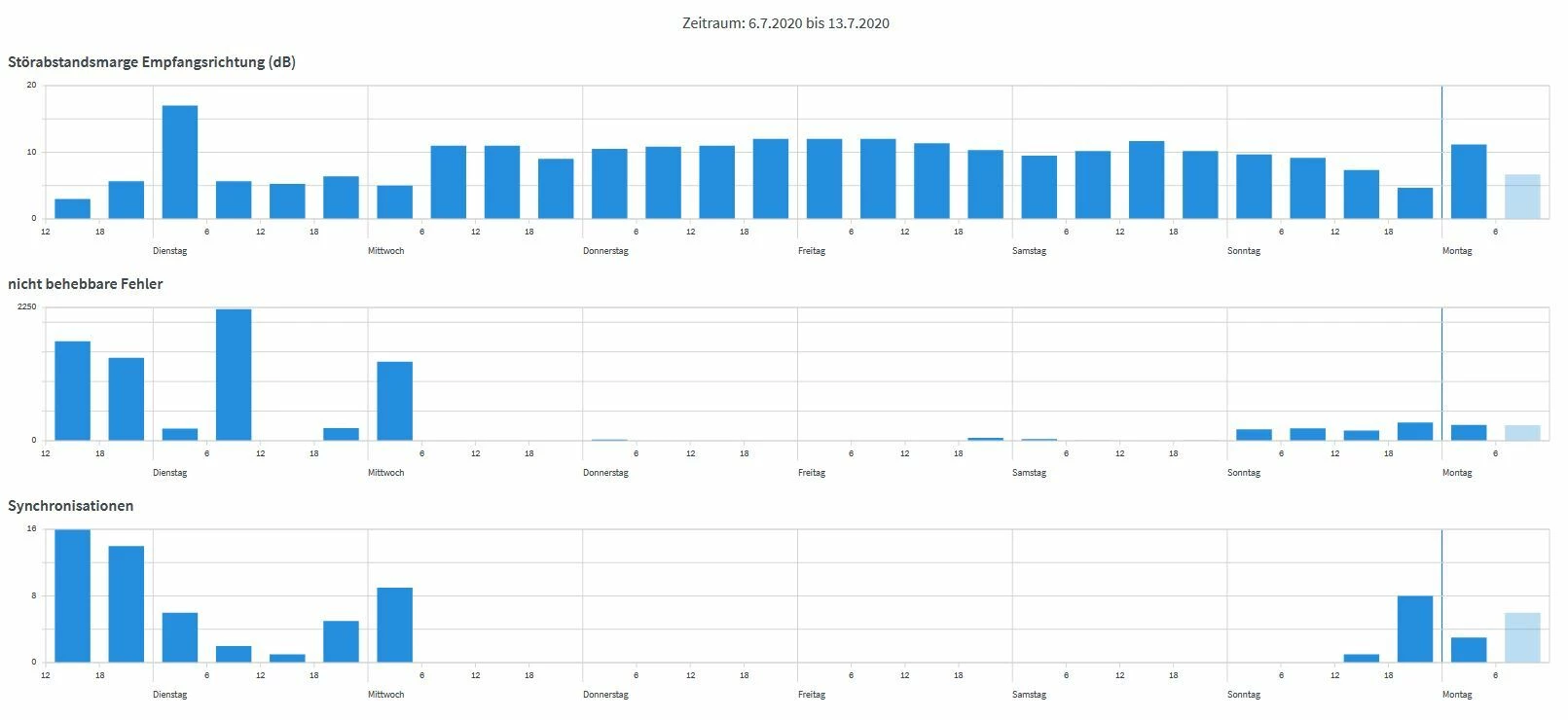 Wie oben erwähnt, ich melde die Störung mit dem erstellten Post. Ich sehe kein Indiz dafür, dass die Hardware versagt. In der Wochenübersicht ist zu erkennen, dass die Störungen am Sonntagabend beginnen und bis Di/Mi anhalten und wieder verschwinden.