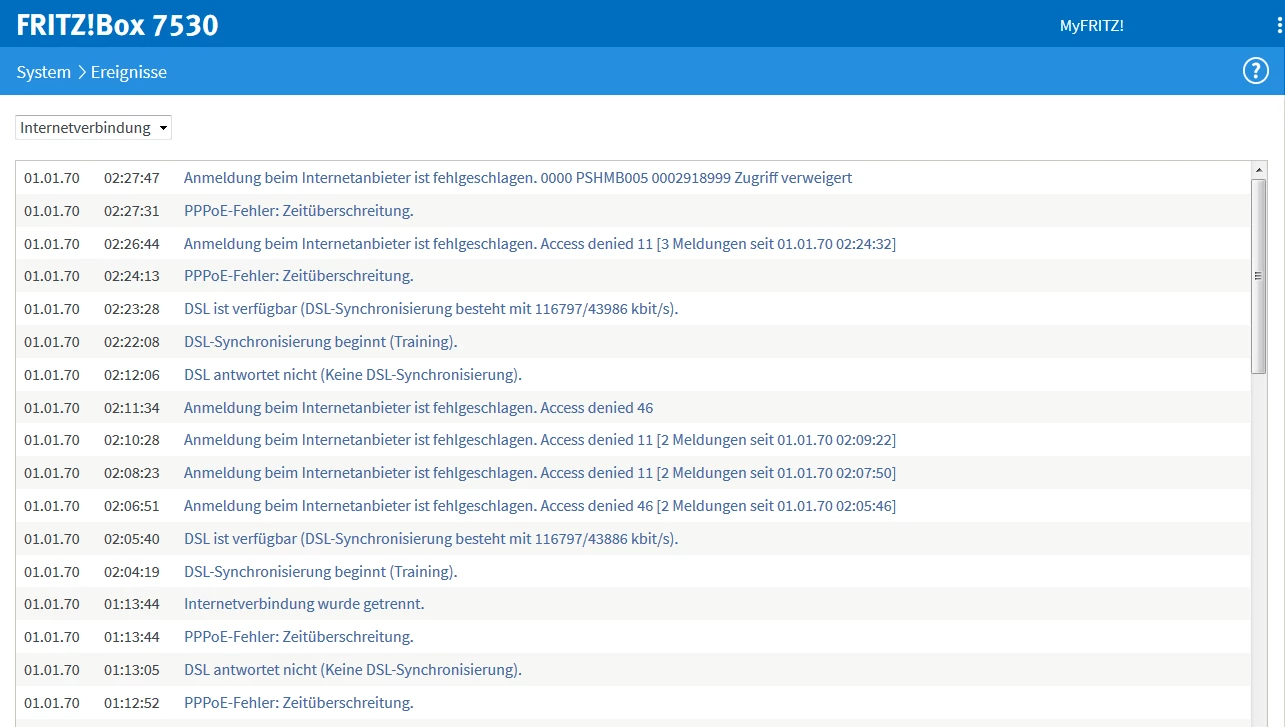 Da scheint mir die DSL-Sychronisation auch öfter mal abzubrechen, oder hast du den DSL-Stecker gezogen?