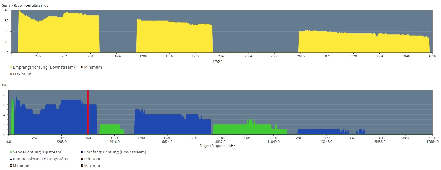 meine DSLAM-Datenrate Max. ist deutlich unter der Leistungskapazität ~40%.