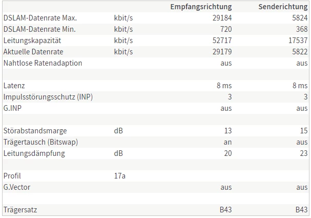 Das macht sich dann auch oftmals darin bemerkbar, dass der Router irgendwann mit höheren Werten synchron ist. Deutlich über 50 oder gar über 100MBit/s.
