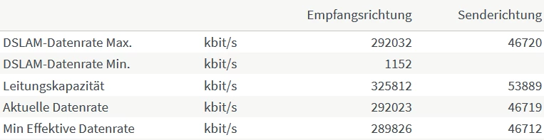 DSLAM zu niedrig / Bandbreitenanpassung auf volle 250 MBit