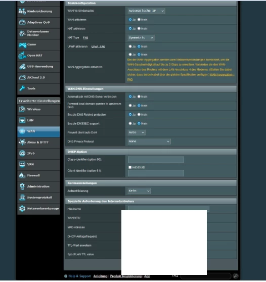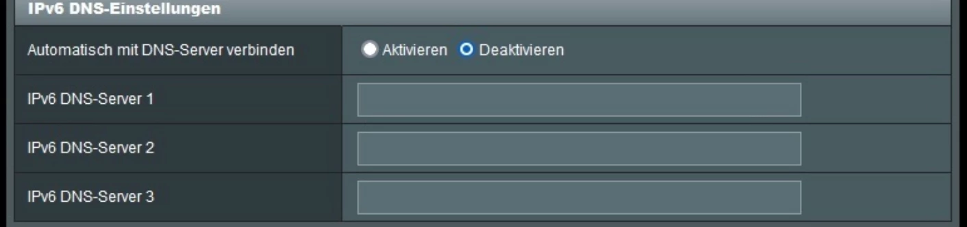 Insgesamt glaube ich das der Asus das nicht kann. Ich habe nichts gefunden zur Aktivierung von IPv6 DNS auf der WAN Schnittstelle.