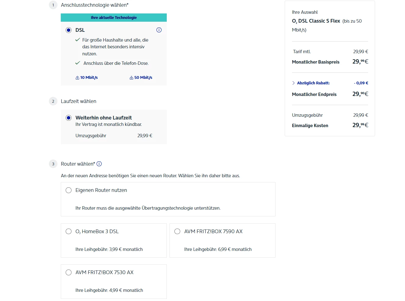 Umzug Kostenpflichtig; Preis erfährst du in „Mein O2“ oder von unserer Kundenbetreuung, maximal 49,99 €