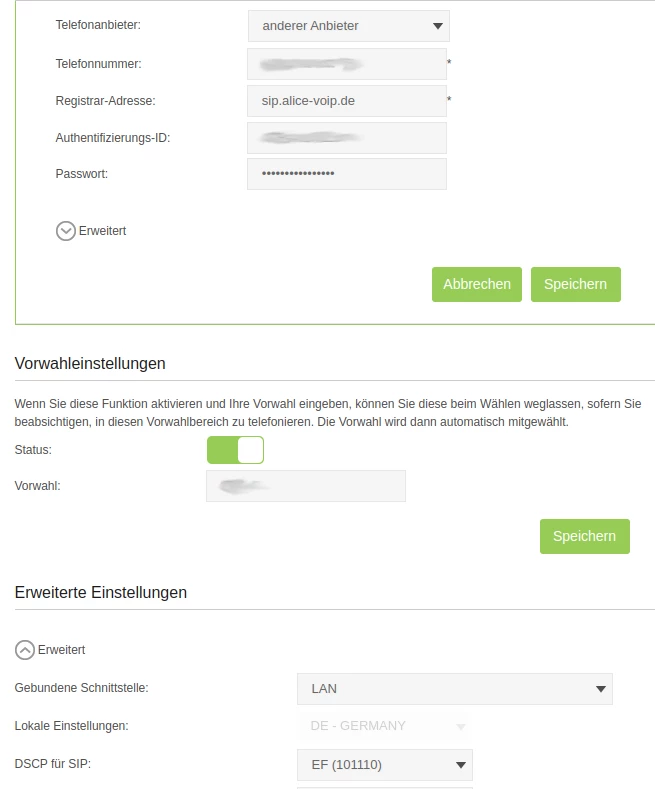 Leider bekomme ich die Telefonie nicht mehr zum Laufen. So wie im Bild dargestellt (Telefonnummer und Auth.-ID entsprechen dem SIP Usernamen) hat es bisher im DSL-Tarif immer funktioniert. Das Passwort habe ich durch das neue ausgetauscht.