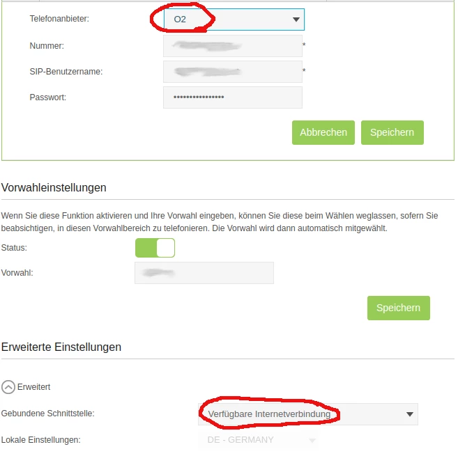 Einrichtung O2 Telefonie bei Glasfaer-Anschluss (TP-Link)