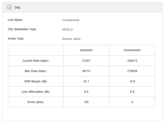 Vielen Dank für eure Antworten. Der Techniker, der das DSL aktiviert hat, hat die Geschwindigkeit überprüft und mir einen Uplink von 268.000 Mbit/s angezeigt. Ich habe O2 beauftragt, das System einzurichten. Wenn alles andere fehlschlägt, werde ich den TP-Link zurückgeben und mir ein neues Gerät kaufen.