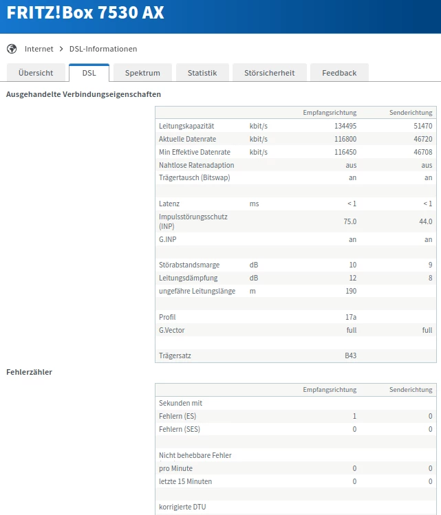 Als Ergänzung zu den Screenshots der Fritzbox wäre es schön, wenn Du go-dsl installieren könntest (https://github.com/janh/go-dsl , Binaries gibt es dort unter https://github.com/janh/go-dsl/releases) und einen Screenshot machen könntest, dabei bitte go-dsl mit dem folgenden Befehl ausführen: