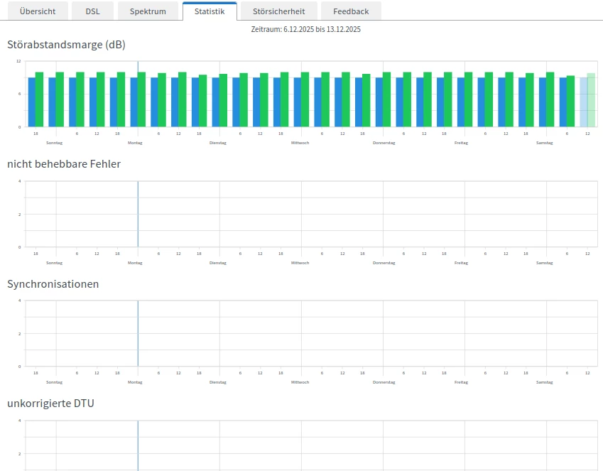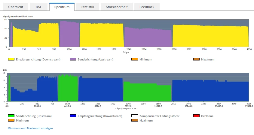 Hier meine Standardfragen bei DSL (die Screenshots bitte machen wenn Dir die Probleme akut auffallen und bitte die Spektren mit Minimum und Maximum anzeigen lassen: