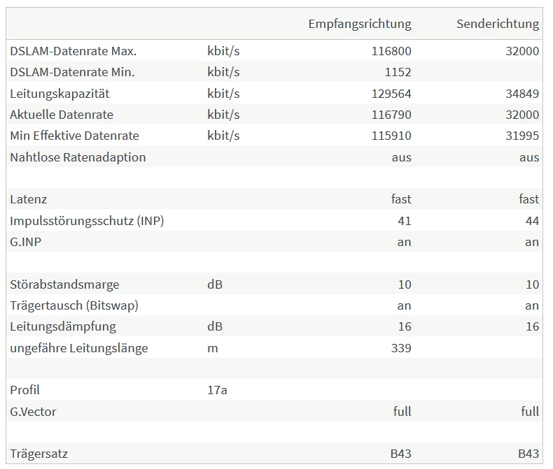 Ich komme nicht weiter. Meine Recherche in div. Foren ergab, dass eine gewisse Differenz zwischen Messwerten und ausgehandelter Datenrate üblich ist. Bei mir ist diese Differenz aber echt krass ca. die Hälfte der Leistung beim Download und ein Drittel der Leistung beim upload.