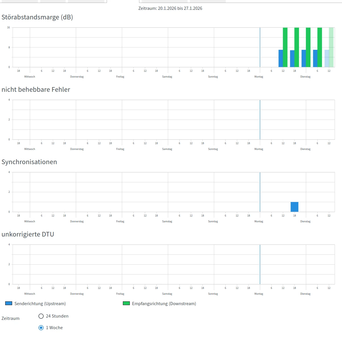 26.01.26 19:04:57 Es hat eine Anpassung der DSL-Datenrate statt gefunden. Weitere dynamische Anpassungen werden automatisch vorgenommen (ohne Nennung).