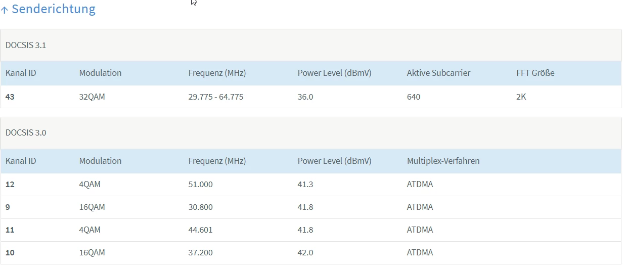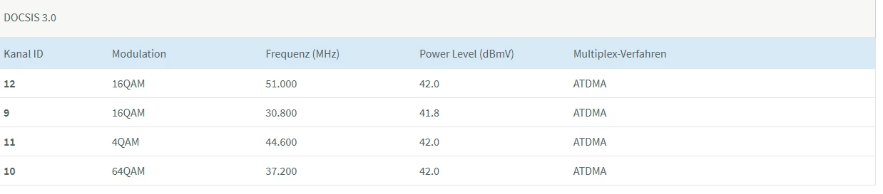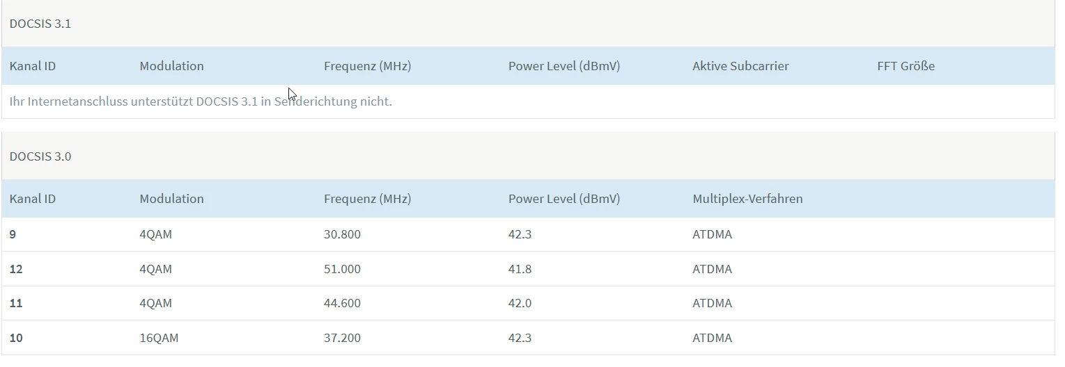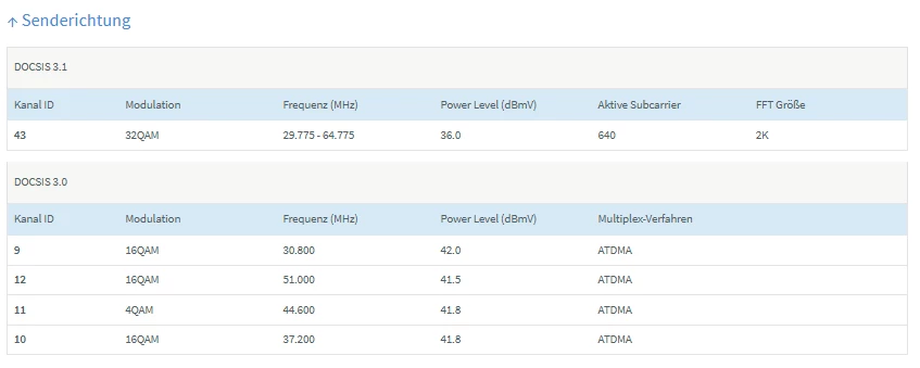 Die 4096QAM in Senderichtung wird es meiner Meinung nach nicht geben. Da sollte aber schon 64/128QAM oder mehr drin sein beim 3.1, je nach Einstellung am Hausanschluss usw. Aber die 32QAM sind zu dünn.