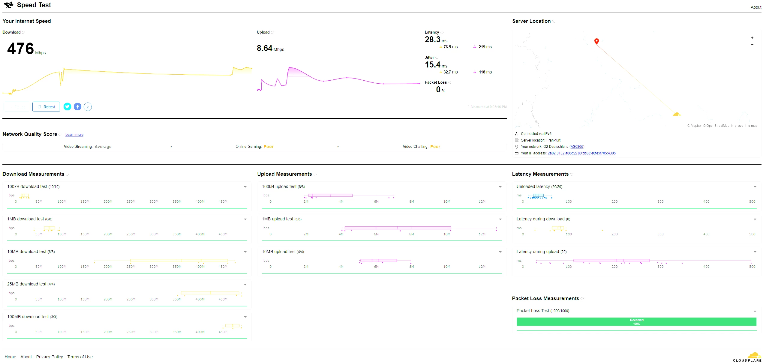 Könntest Du bitte einen "Kapazitätstest"*  bei Cloudflare machen und eine Screenshot der gesamten Resultatsseite posten?