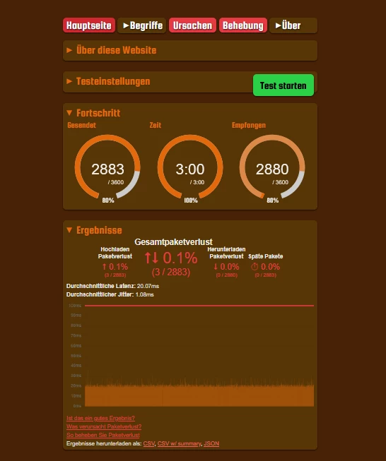 Um festzustellen ob und in welcher Richtung Pakete verloren gehen ist die folgende Seite hilfreich: