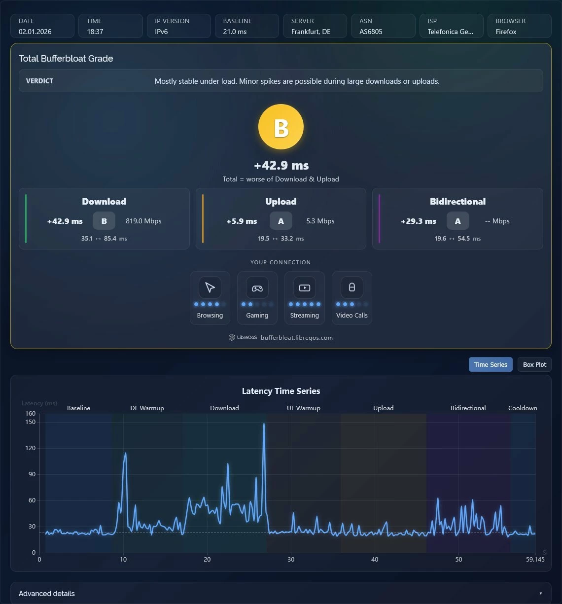 @pufferueberlauf0 Ich habe die Advanced Details vom bufferbloattest komplett vergessen.