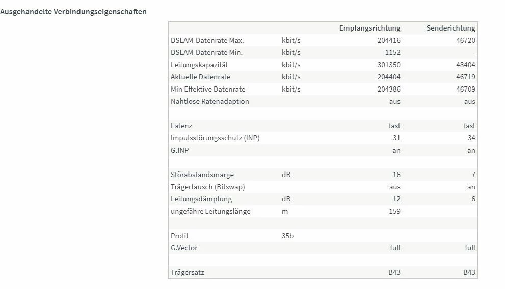 ich habe O2 my Home XL, aber anstatt von 250 Mbit kommen nur ca. 170 MBit real an. Ich nehme an, dass das falsche Profil auf meinen Anschluss geschaltet ist, nämlich 185 anstatt das 250er bzw. 280er Profil. Die Leitung gibt genug Bandbreite her. Siehe Screenshot von der FritzBox:
