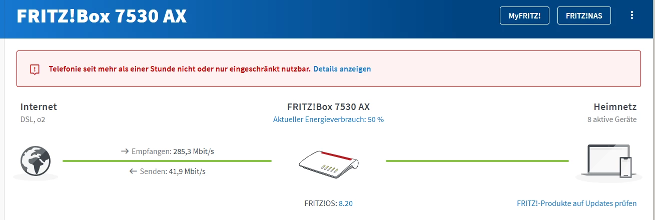 ich habe meinen O2 Home L 250 Vertrag in eine neue Wohnung umgezogen, die Festnetznummer ist auch die gleiche geblieben. Allerdings leuchtet hier am Router die Info in Rot und im Router steht: