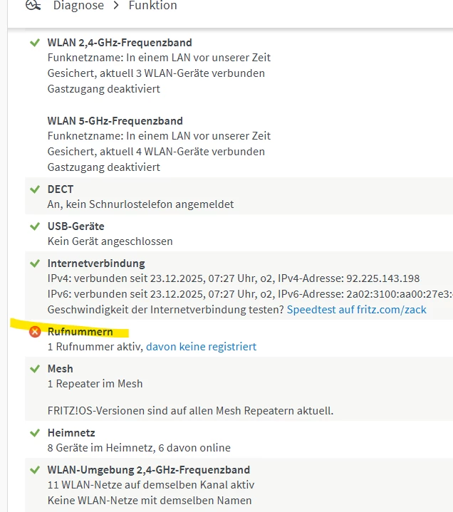allerdings ist meine Nummer im Router registriert, nur die leuchtet nicht grün sondern grau