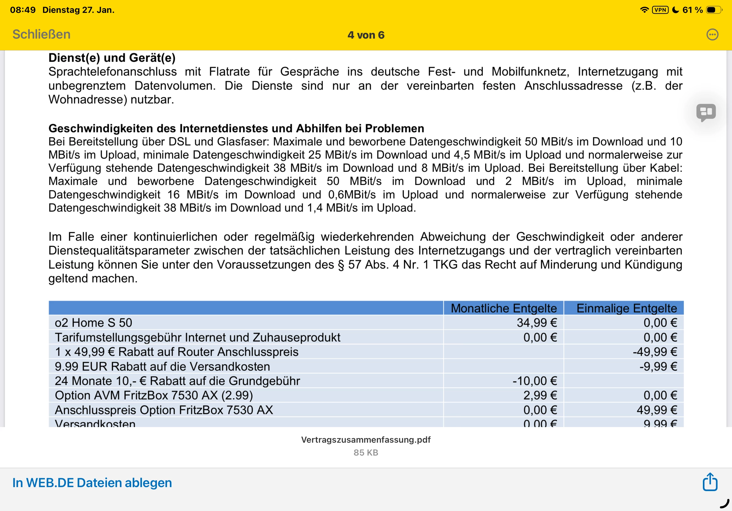 der Vertrag lautet o2 Home S 50.