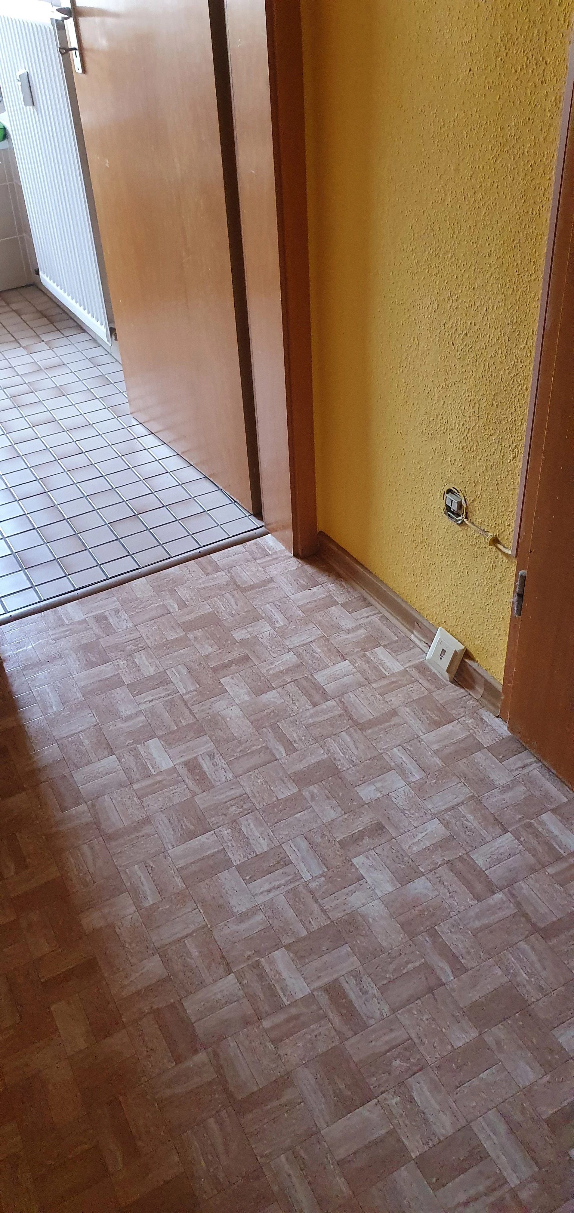 Hier nochmal wo die Ursprungs Dose gelegt wurde, sagt selber, tolle Stelle, wo soll ich da ein Tischchen/Brett etc anbringen/hinstellen, ohne das ständig umzurennen ?? Wie haben die Vormieter das mit ihrem Telefon gemacht ?? Erschließt sich mir nicht 😬