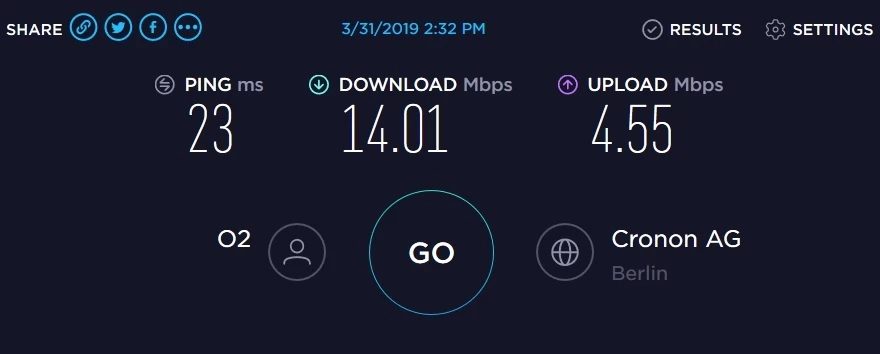 Bitte mache trotzdem den Speedtest mit der Homebox und poste das Ergebnis.