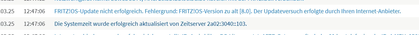 FRITZ!OS-Update nicht erfolgreich. Fehlergrund: Installation der neuen FRITZ!OS-Version vorzeitig abgebrochen. Fritz!OS-Version (8.0) zu alt.