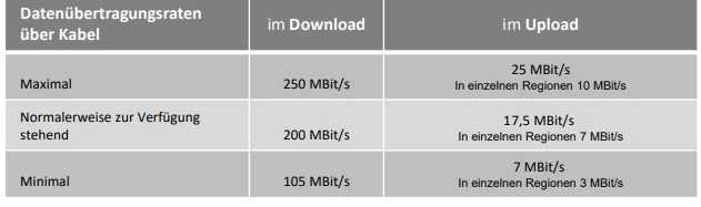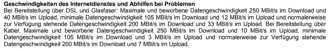 Den Upload finde ist nicht das, was mir am Telefon beim Vertragsabschluss versprochen worden ist aber habe ich danach in den Vertragsdaten auch gesehen, das man sich hier sehr viel Spielraum offen lässt.