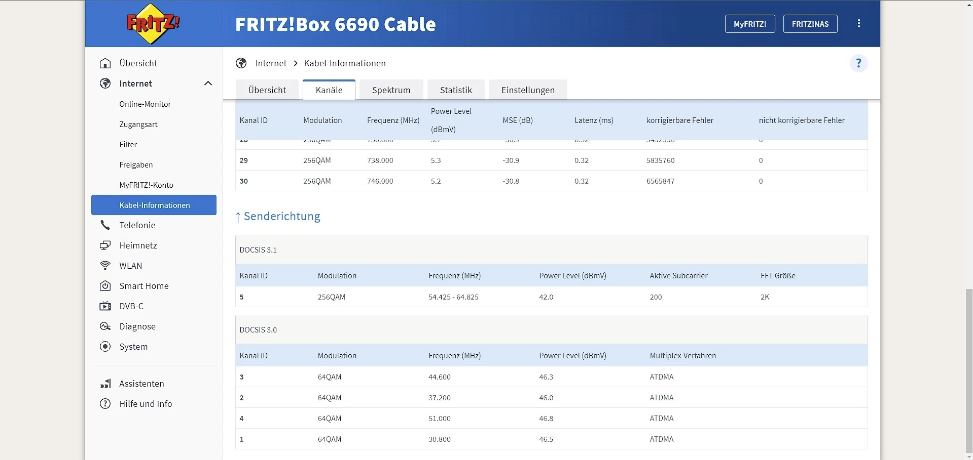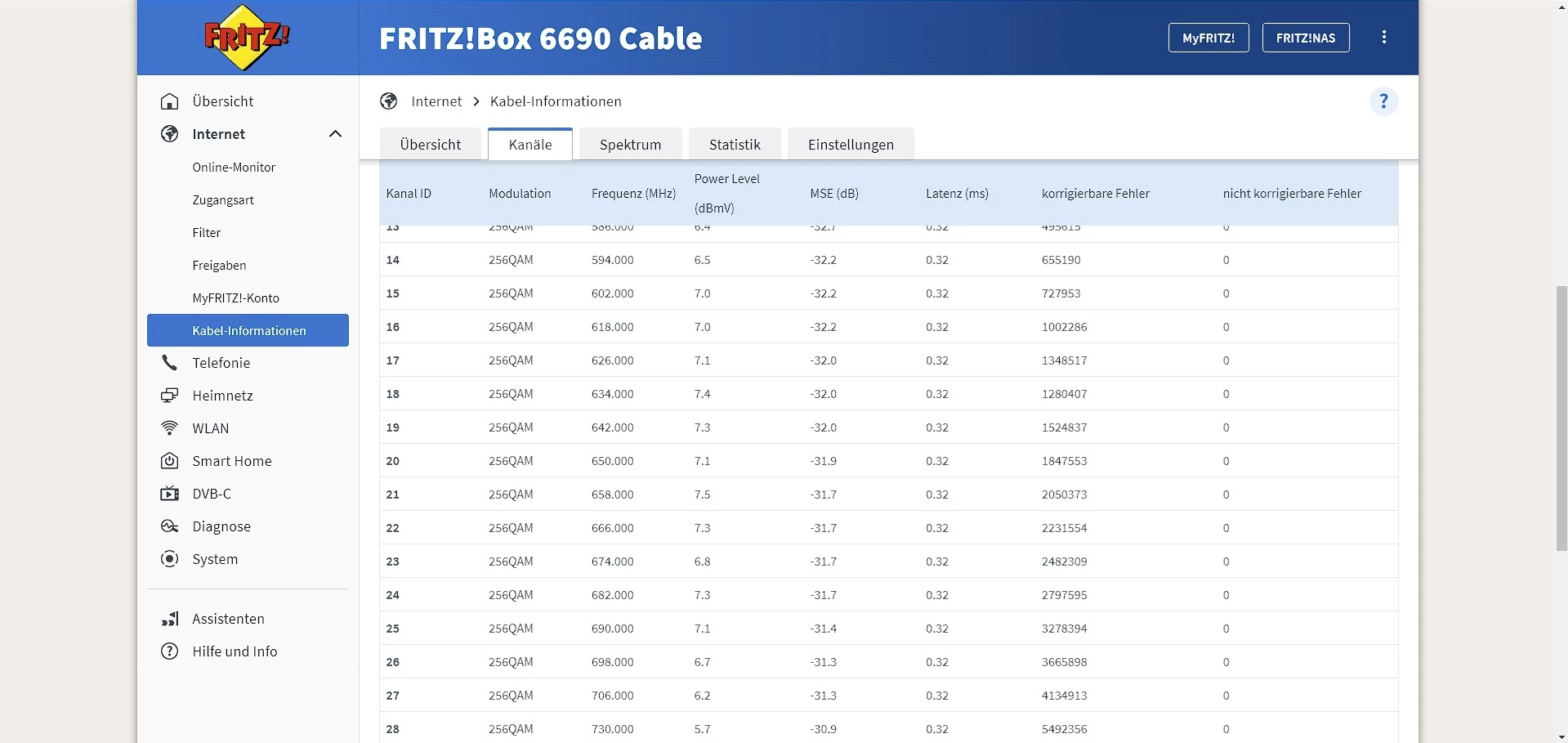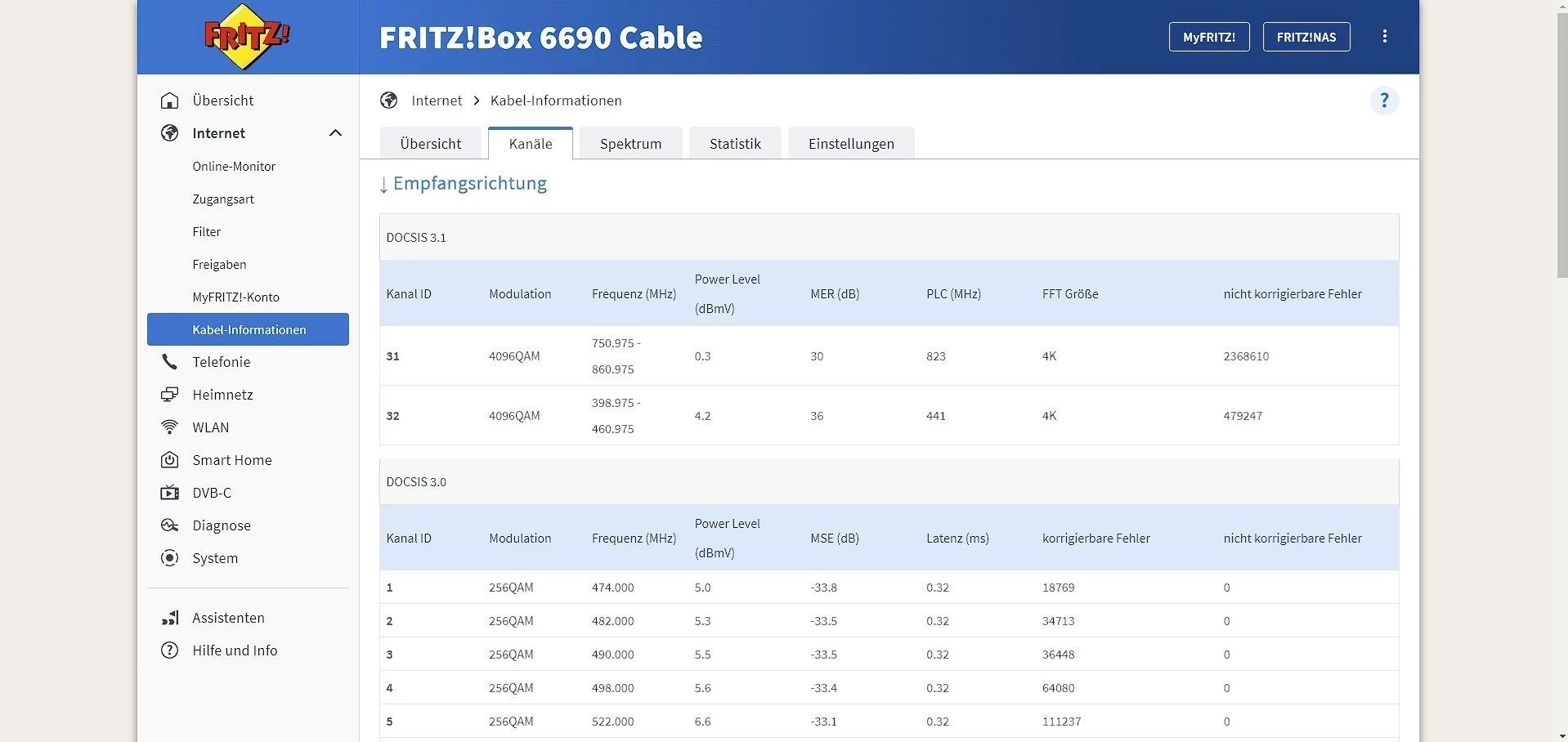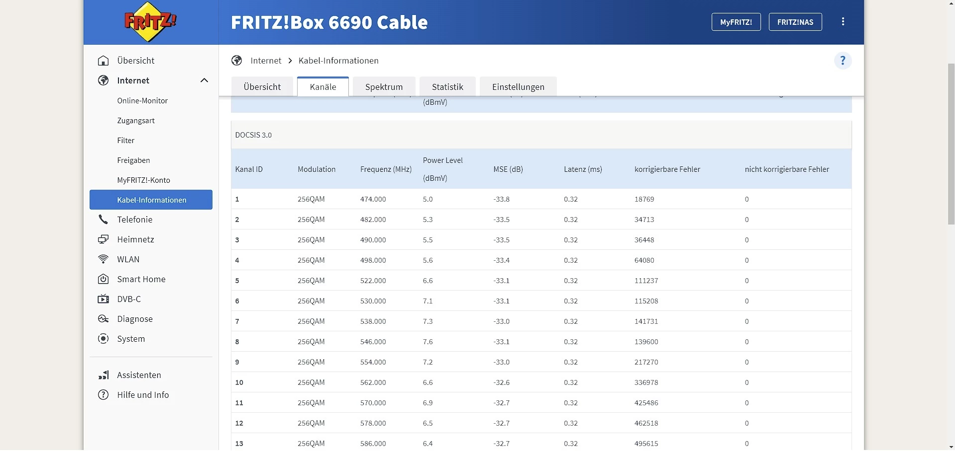 FritzBox 6690 nicht korrigierbare Fehler und allgemein Kanal Info